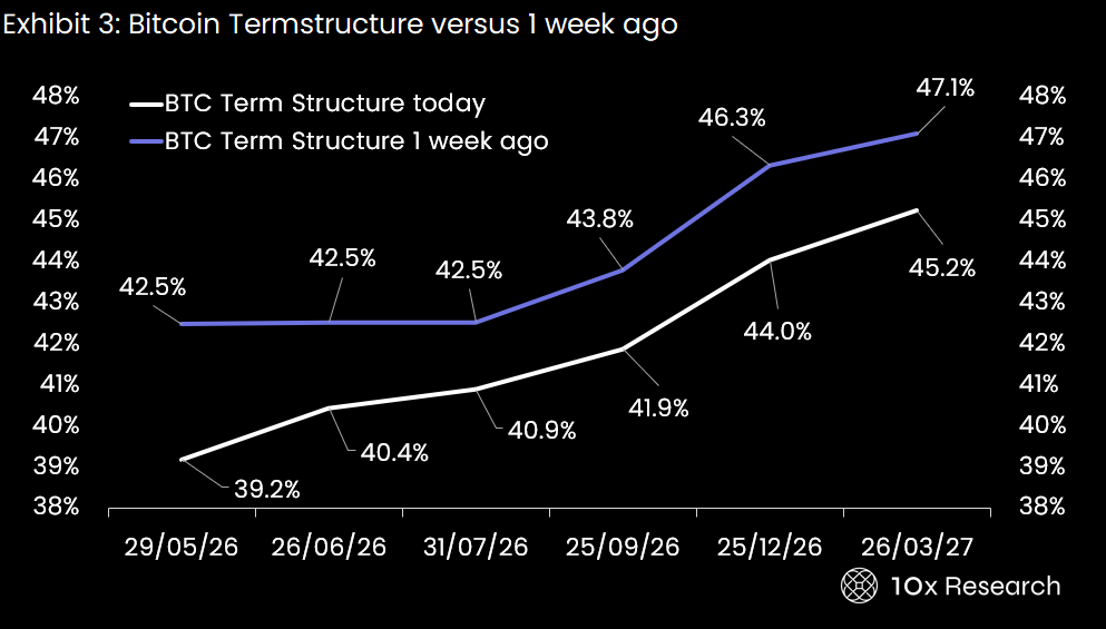 Bitcoin implied volatility has compressed to 39.2%, the lowest in months, while realized vol has collapsed even faster to 36.1%. For the first time since early 2026, implied is trading marginally rich to realized. Skew is healing across the curve. Dealer gamma is dangerously short with a magnetic positive gamma wall waiting. Options positioning is historically clean.