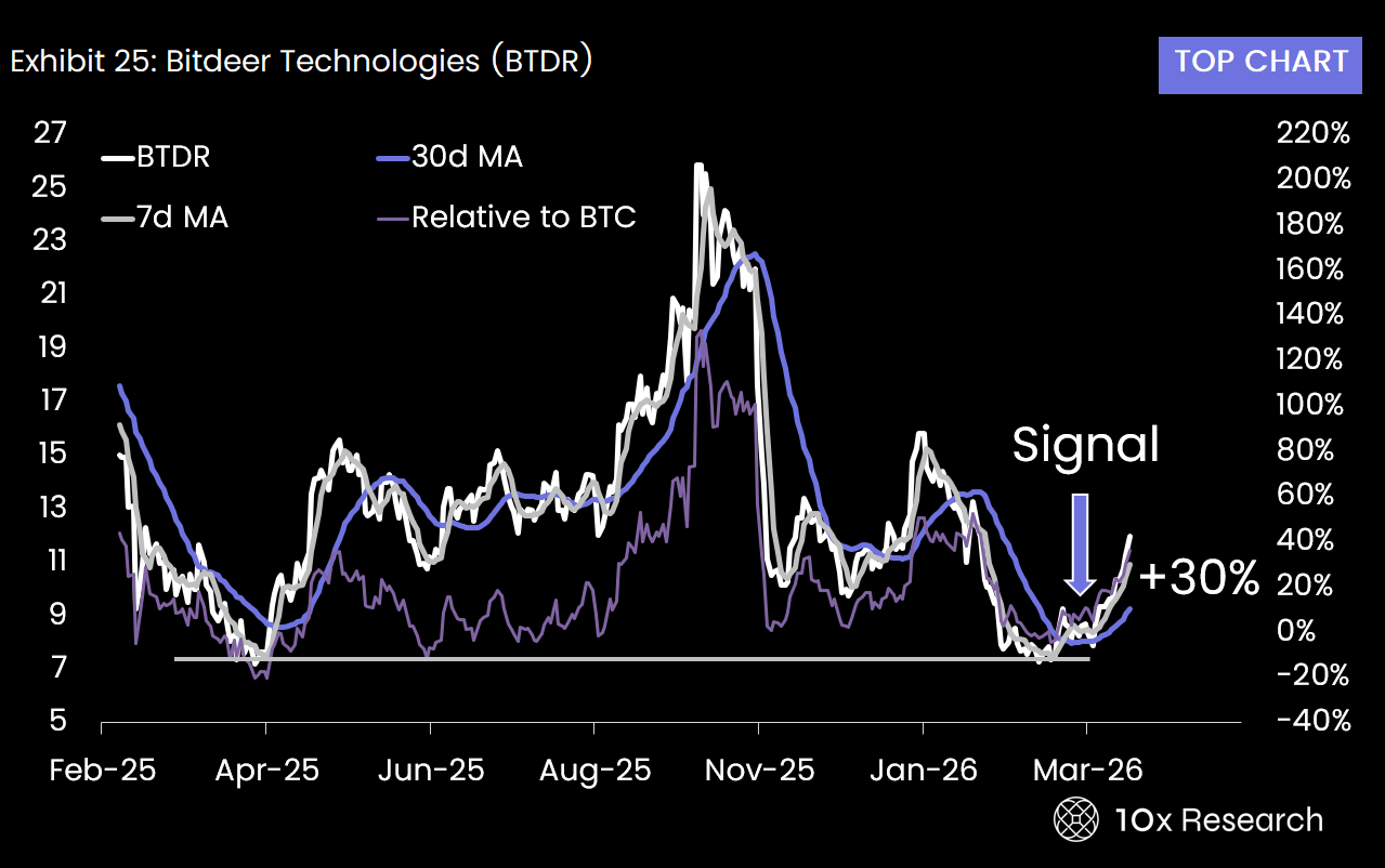On March 18, 10x Research Trading Signals flagged Bitdeer (BTDR) as a buy. One month later, the stock is up 30%, and the structural case remains intact.