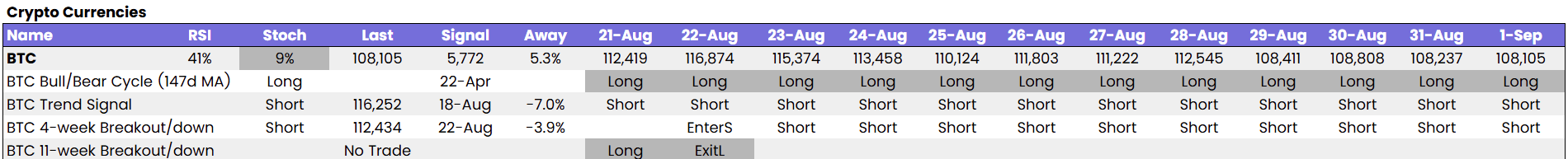 In our last Crypto Trends Chart Book (August 20), we warned that “many altcoin charts suggest momentum has broken down, and we would exercise caution with long exposure, as most appear to be resuming their downtrends.” That view is playing out, with prices correcting and sliding back into decline.